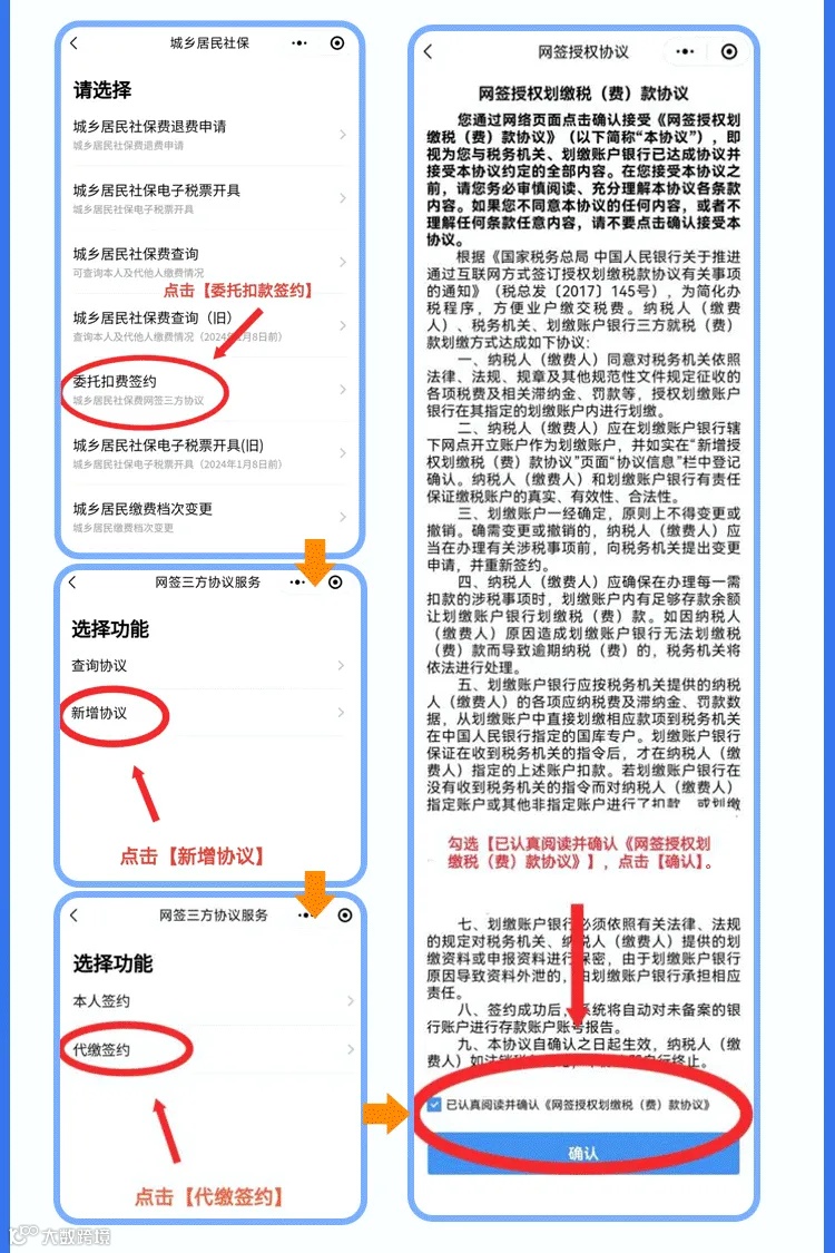 进入【城乡居民社保】--【委托扣费签约】--【查询协议】--【代缴查询】--【终止协议】