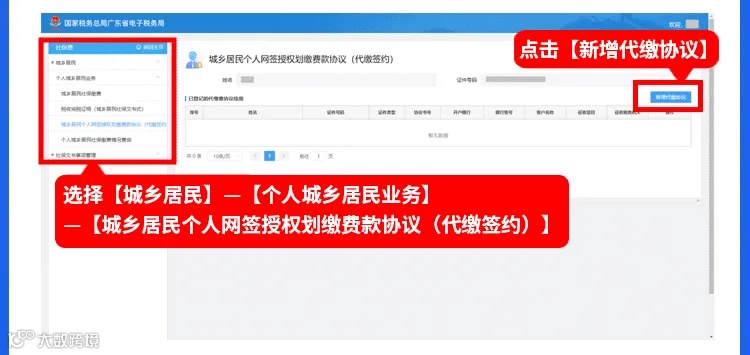 进入【城乡居民】--【个人城乡居民业务】--【城乡居民个人网签授权划缴费款协议(代缴签约)】,即可查看您线上签订的代缴协议信息。