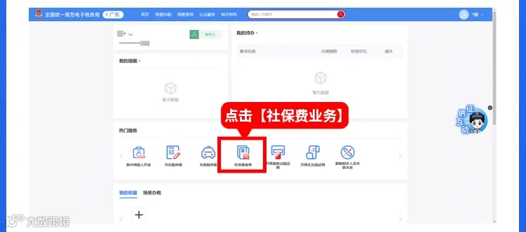 第二步:进入首页【热门服务】-【社保费业务】,点击【社保费业务】。