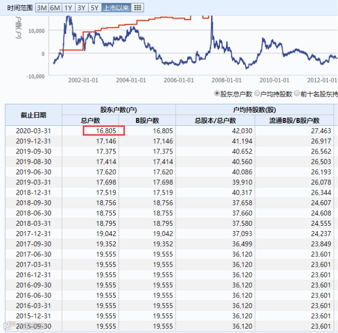 作为B股上市公司,东沣B的股东户数虽然不如很多A股公司多,但也常年都在1万户以上,截至2020年一季度末,东沣B股东户数仍有1.68万户。