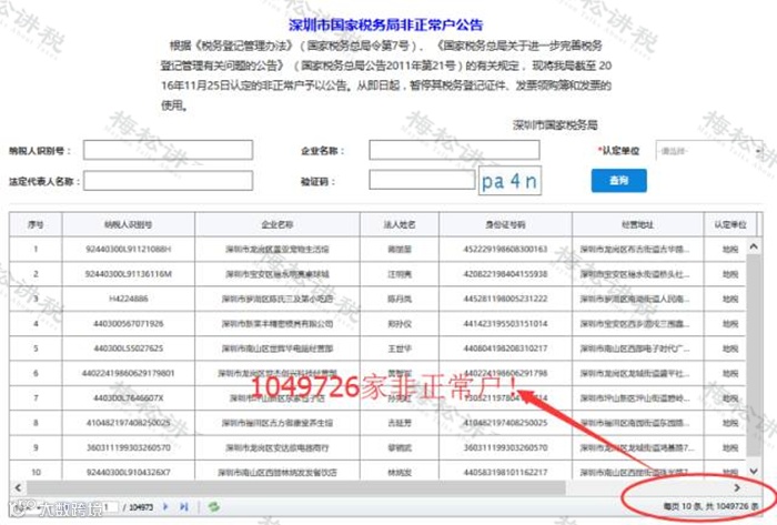 看看深圳104万的非正常户就知道了: