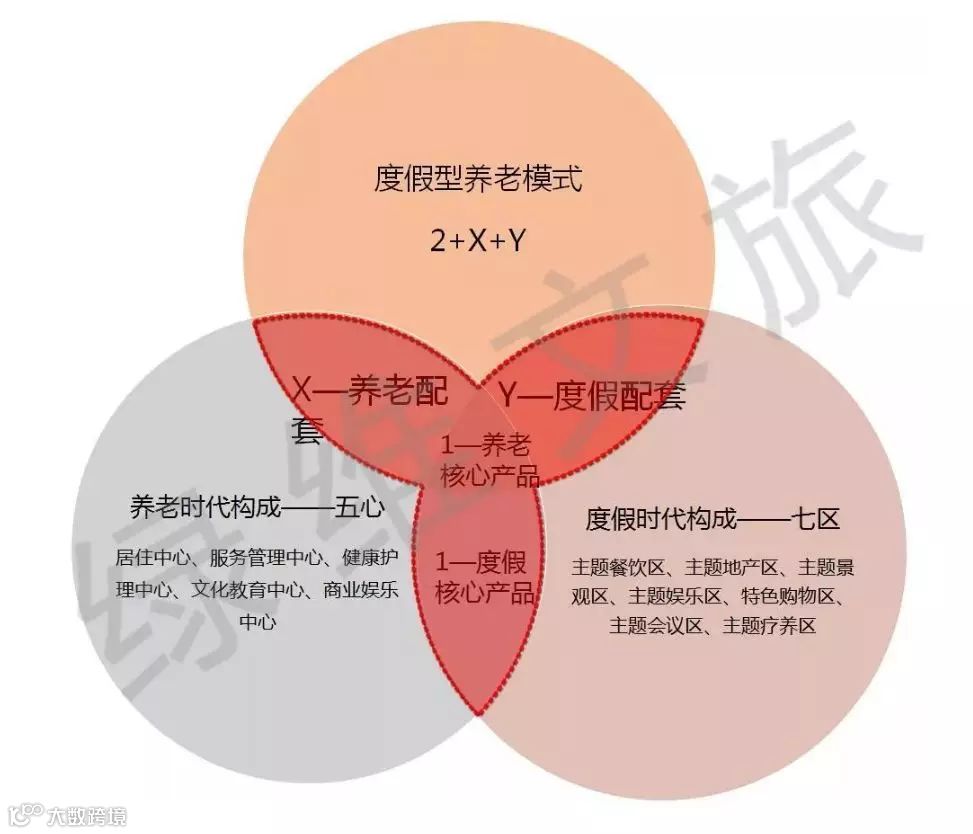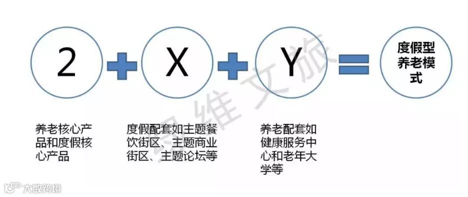 可将享老度假总结为“2+X+Y”模式。取养老和度假二者的核心部分,通过专业化打造、产业化融合使传统的养老社区进行了突破性的变革——让配套成为“主套”、让配套自我造血、让消费拓展延伸、让商业模式优化、让开发风险降低,进而形成一个高尚生活空间、一个高端生活区、一个文化聚集区、一个局部的商业聚集区。