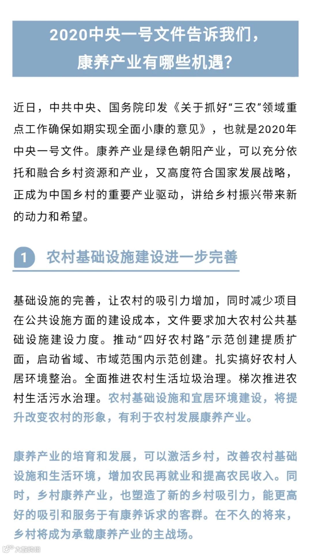 农村基层医疗能力的加强,有利于康养产业发展,中央一号文要求加强农村基层医疗卫生服务。办好县级医院,推进标准化乡镇卫生院建设,改造提升村卫生室,消除医疗服务空白点。稳步推进紧密型县城医疗卫生共同体建设。