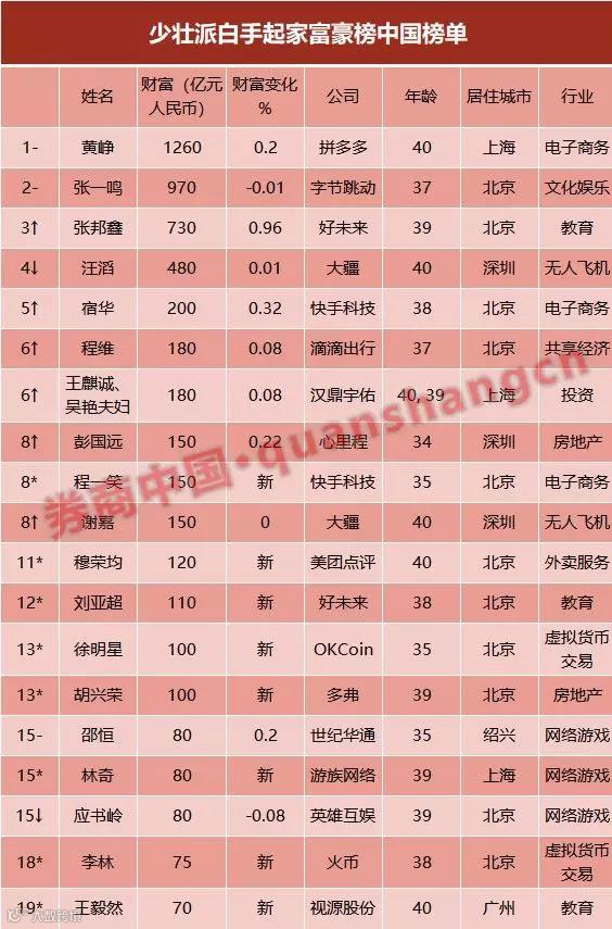 在该份榜单中,中国共有19名80后成功上榜,他们的名字更是耳熟能详。