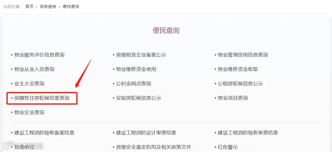 看到如下页面,点击【更多便民查询】—【保障性住房轮候结果查询】
