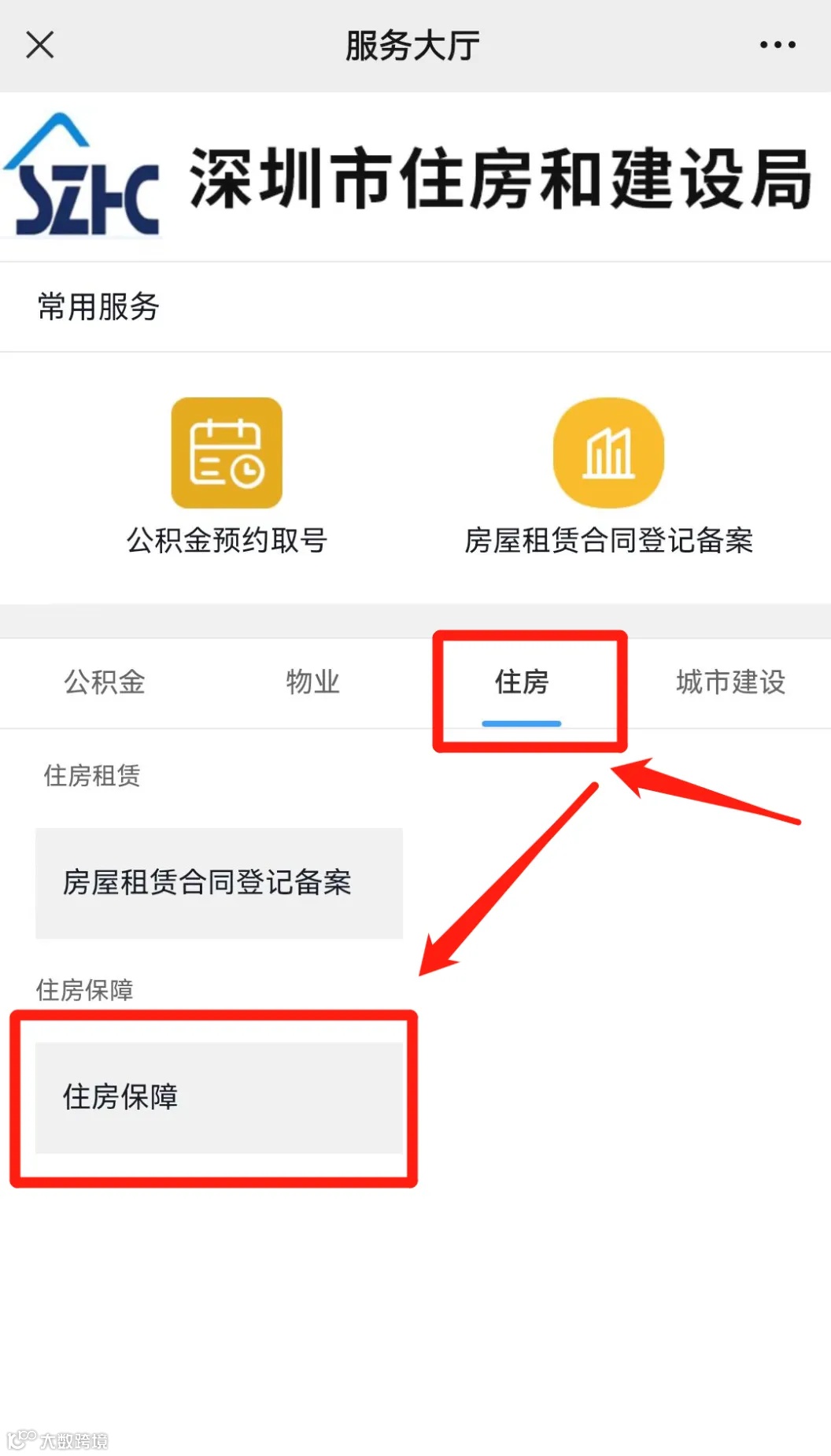 在深圳市住房和建设局公众号内,点击【业务办理】-【住房】-【住房保障】,输入账号密码登录