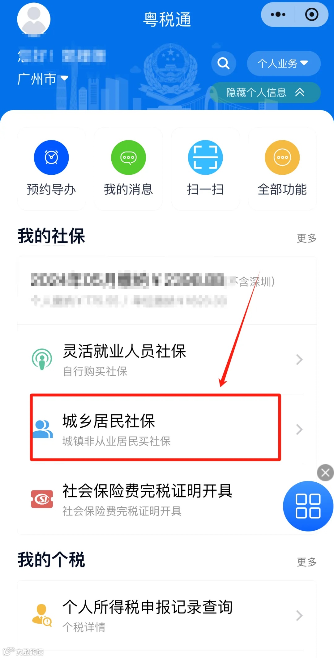 💠第二步:在页面中找到“城乡居民社保”并点击,如下图所示;