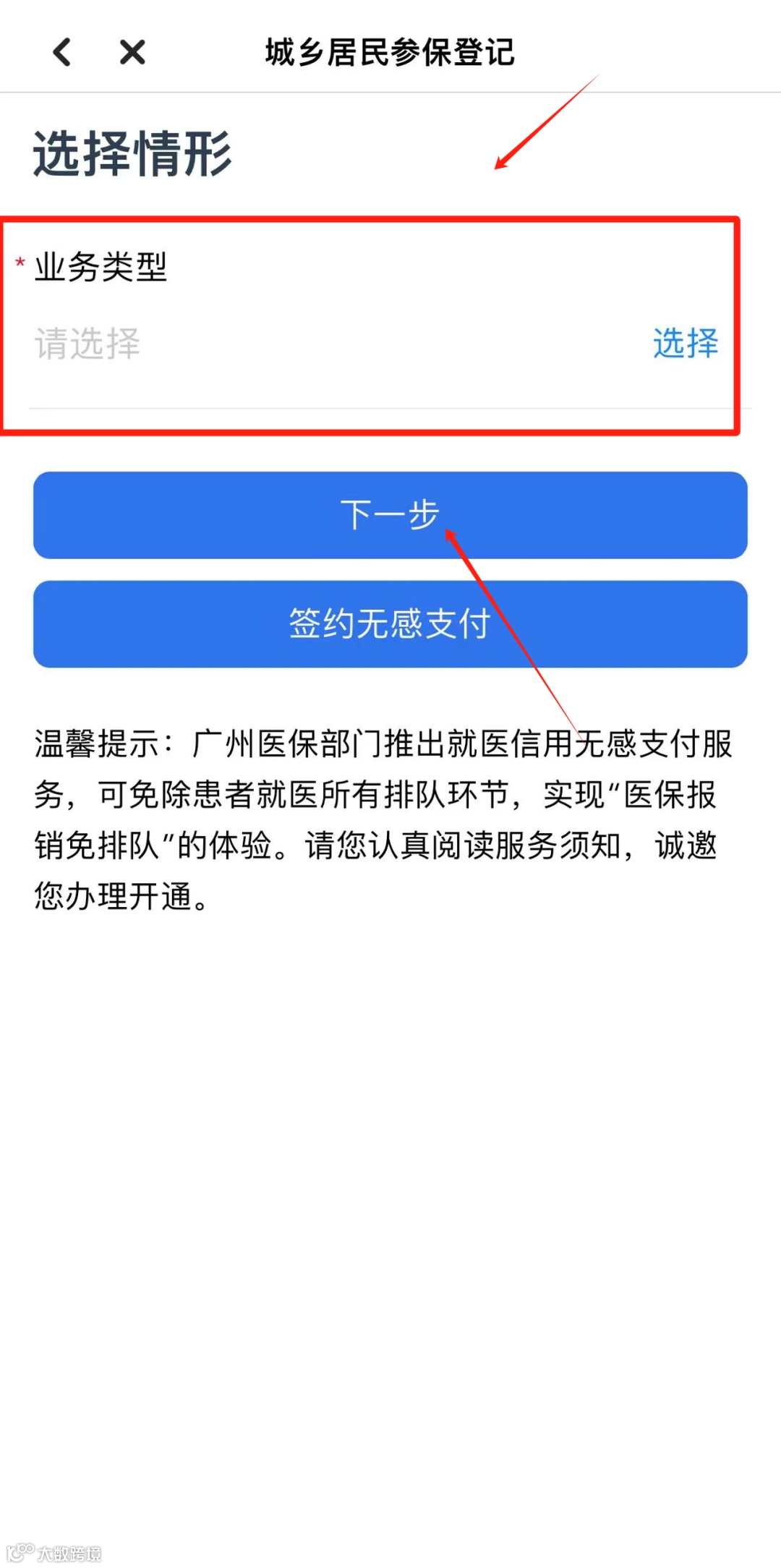 💠第四步:选择业务办理类型,滑动选择业务类型,并点击【下一步】,如下图所示;