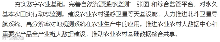 推进农业数字化转型。加快推广云计算、大数据、物联网、人工智能在农业生产经营管理中的运用,促进新一代信息技术与种植业、种业、畜牧业、渔业、农产品加工业全面深度融合应用,打造科技农业、智慧农业、品牌农业。建设智慧农(牧)场,推广精准化农(牧)业作业。