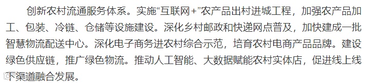 积极发展乡村新业态。推动互联网与特色农业深度融合,发展创意农业、认养农业、观光农业、都市农业等新业态,促进游憩休闲、健康养生、创意民宿等新产业发展,规范有序发展乡村共享经济。