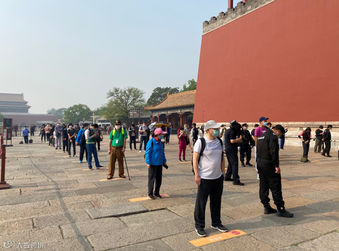 故宫在闭门谢客97天后,今天重新开门迎客。今天一大早,工作人员就进行了消杀工作。现场游客并不算多,均佩戴口罩,间距1.5米有序排队。有游客称,这次来故宫参观像是“老友重逢”。