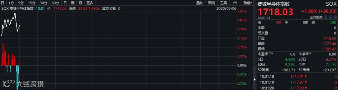 英特尔、台积电等与华为有密切合作的公司亦有不错涨幅。费城半导体指数整体涨幅亦较为可观。