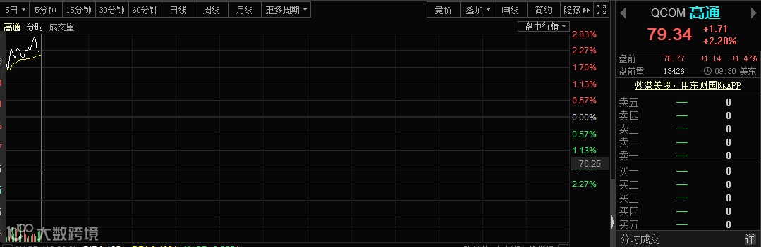 受此消息刺激,美股华为概念股普遍上涨,跟华为合作紧密的高通上涨超过2%。