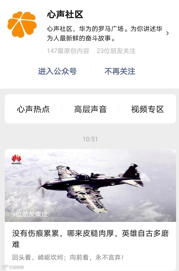 5月16日上午,华为通过心声社区发文:“没有伤痕累累,哪来皮糙肉厚,英雄自古多磨难。回头看,崎岖坎坷;向前看,永不言弃!”