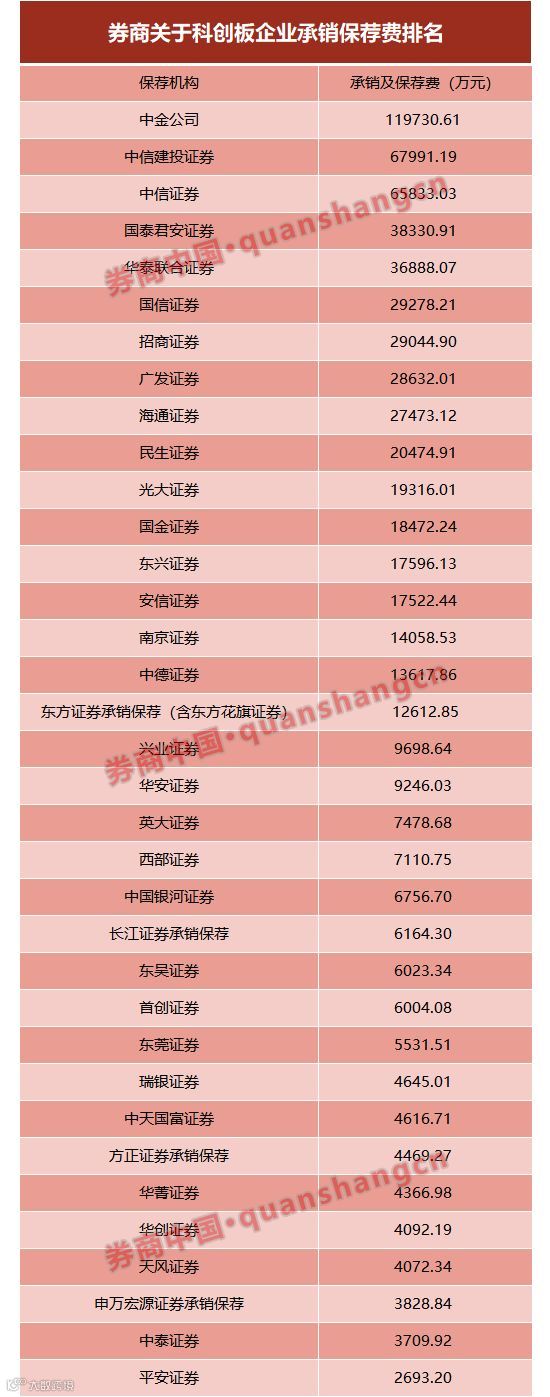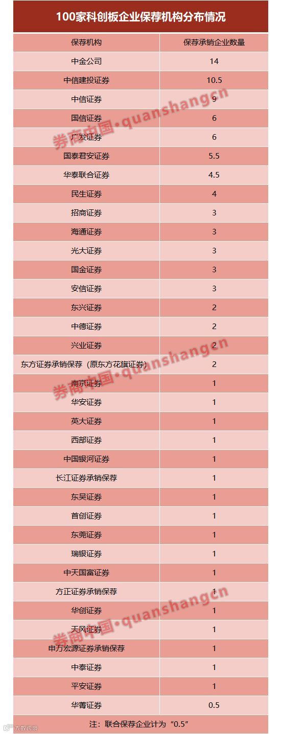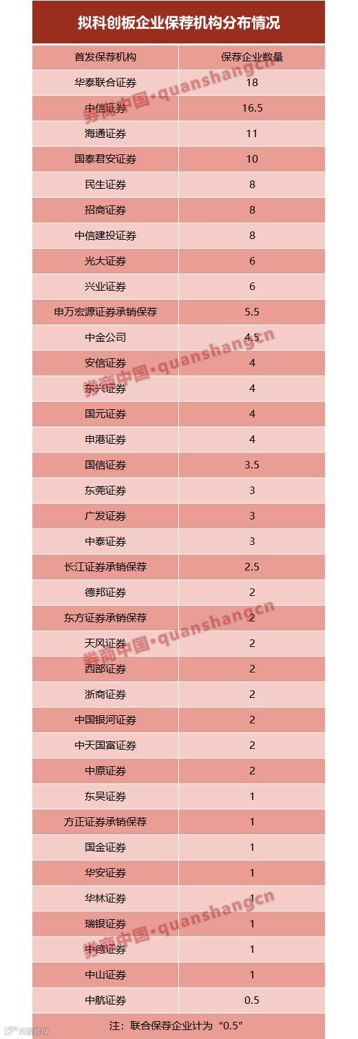 此外,国泰君安、国信证券、广发证券分别保荐6家科创板企业,华泰联合证券保荐5家,民生证券保荐4家。
