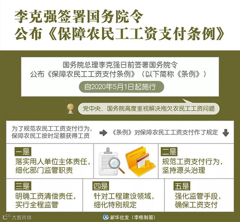 二是落实《保障农民工工资支付条例》,建立清欠与根治拖欠农民工工资的协调联动机制。以政府投资项目拖欠农民工工资为重点,清欠资金优先清偿拖欠的农民工工资。今后各类项目建设都要留足用于支付农民工工资的资金并按合同及时发放,尤其是各级政府和国有企事业单位不得以任何理由拖欠农民工工资。