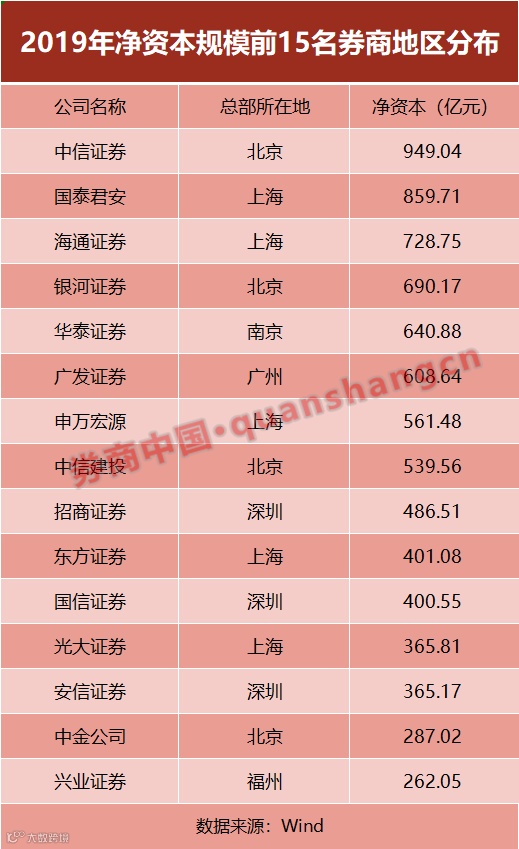 相比来看,京沪地区大型券商资本金至少500亿以上。剔除最高值(中信证券),北京地区券商代表如银河证券、中信建投,分别有690亿、540亿净资本;上海地区大型券商如国泰君安860亿、海通证券729亿。
