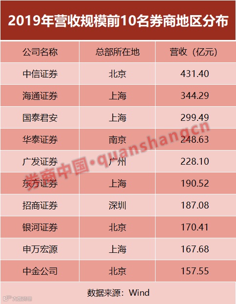 前述提及的2019年券商营收排名中,上海国资背景的三家券商(国泰君安、海通证券、东方证券)整整齐齐在第一梯队,代表着上海券业发展整体向好,有市场人士解读这与当地政府多年支持密不可分。
