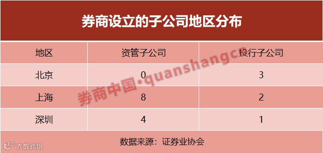 根据券商中国记者不完全统计,上海是券商设立子/分公司的主要选择地。比如国金证券在上海设立5家分公司,分别涉及自营、承销保荐、资管、投资咨询、互联网证券;湘财证券、华福证券及深圳本土券商华鑫证券将自营分公司设在上海;资管子/分公司更多,如山西证券、东海证券、中泰证券、红塔证券、长江证券。北京地区主要吸引投行子公司设立,比如第一创业、方正证券、国金证券、湘财证券。