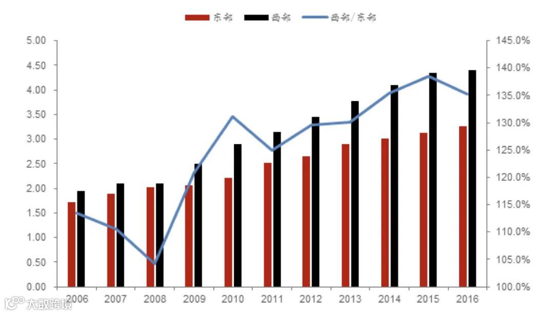 也就是说,东部的GDP总量要占全国50%以上,人均GDP也要比西部高很多,但基建投资方面,则西部的人均水平要超出东部很多。这是否意味着我国存在基建投资的结构性失衡呢?