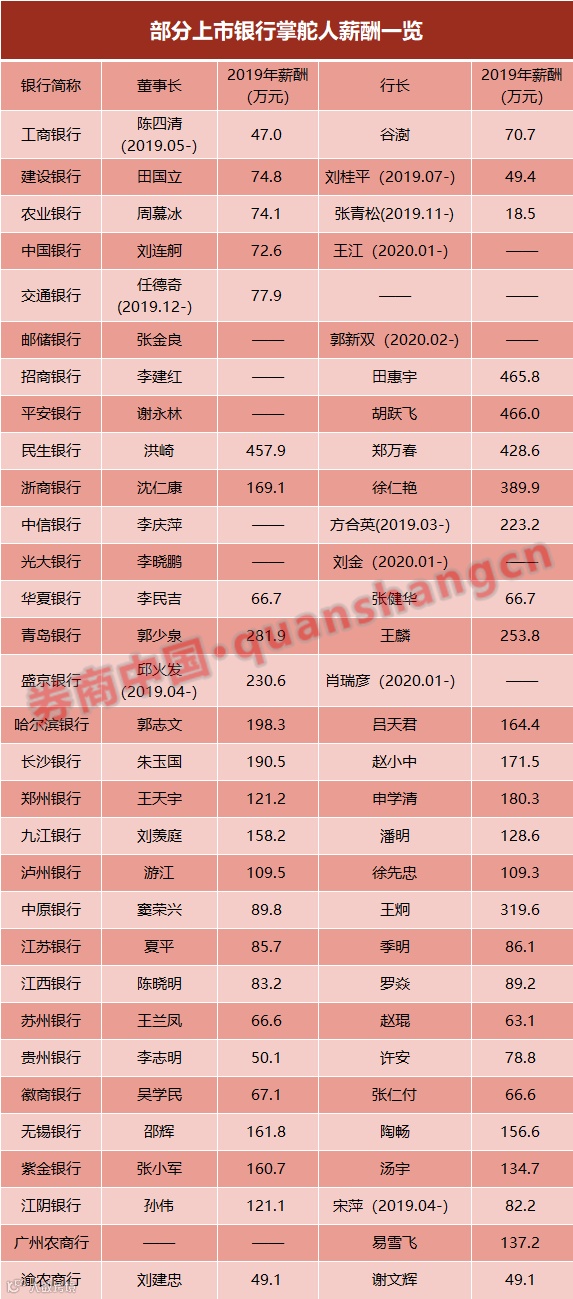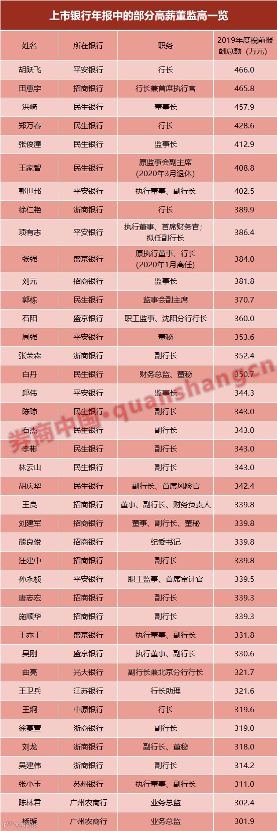 随着年报渐次披露,上市银行董监高2019年的薪酬也浮出水面。