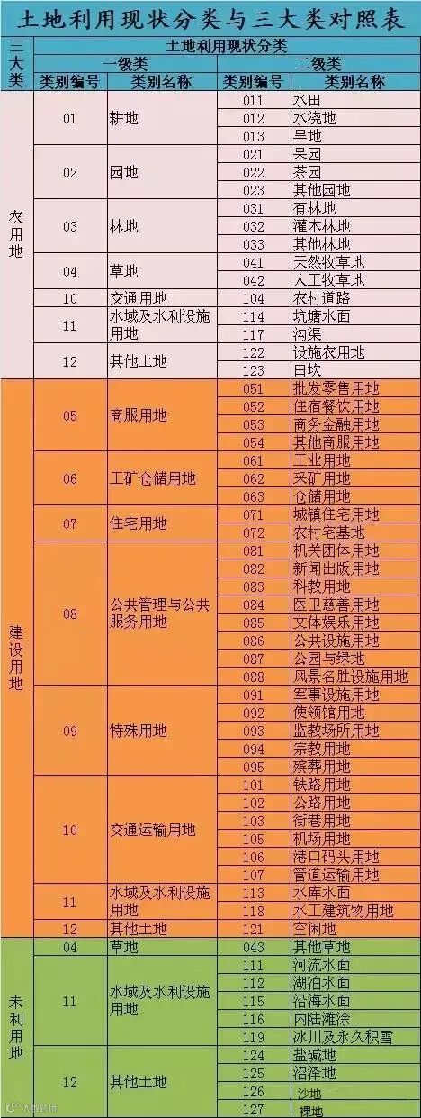《中华人民共和国土地管理法》与《土地利用现状分类》中类别的对照关系: