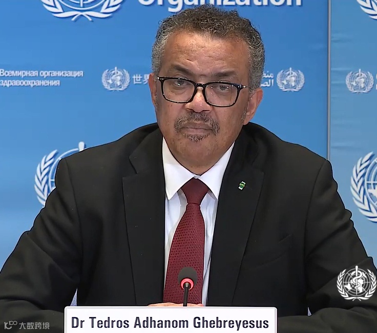在26日召开的二十国集团领导人应对新冠肺炎特别峰会上,世卫组织总干事谭德塞表示,新冠肺炎大流行正以指数级速度增长。病例数量达到首个10万花了67天时间,达到第二个10万用了11天,而第三个10万仅用了4天,第四个10万仅用了2天。如果不是所有国家都采取积极措施,数百万人可能丧生,这是一场全球危机,需要全球应对。