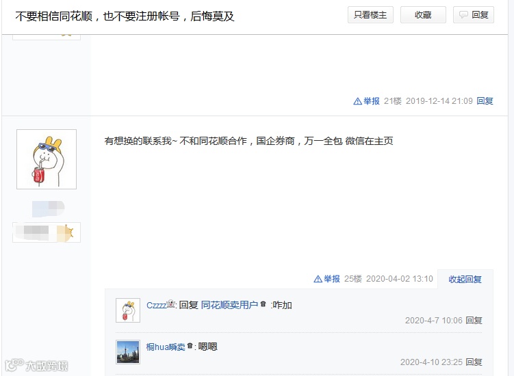 当然,除了系统账户安全等方面的考虑,2017年年中,同花顺被曝出在券商中“倒卖”客户事件,向高佣金客户建议到其他低佣金券商开户,并附带开户跳转链接。这也是部分券商选择与同花顺停止合作的理由之一。
