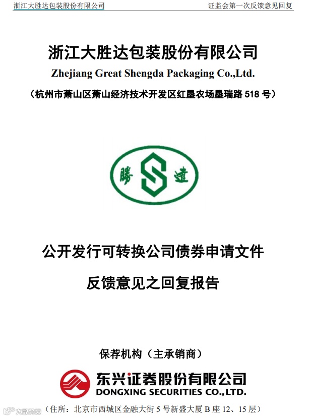 此前,证监会披露的再融资反馈意见显示,由于申报材料存在粗糙的问题,发行监管部要求发行人大胜达和保荐机构东兴证券对该问题进行全面整改,并要求保荐机构对是否勤勉尽责做出说明。