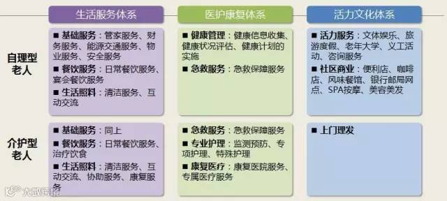 生活服务体系、医护康复体系、活力文化体系,两类人群对于相应服务的需求是不同的。