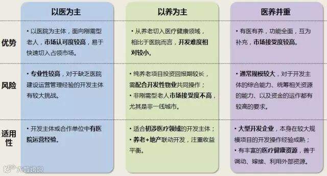 医养结合项目中,以养为主的模式,通常以养老社区/公寓为依托,配套二级及以下医院,满足社区老人日常看病和急救的需求。