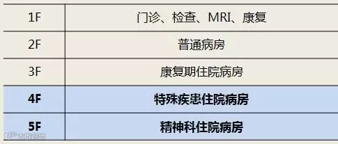 医院供设五层,其中4F和5F主要为失能和失智老人使用。