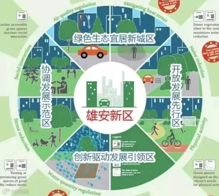 (2)雄安新区规划建设的一个核心理念是把城市还给人,不再按照汽车尺度来设计城市和道路,而是按照人的尺度来设计。