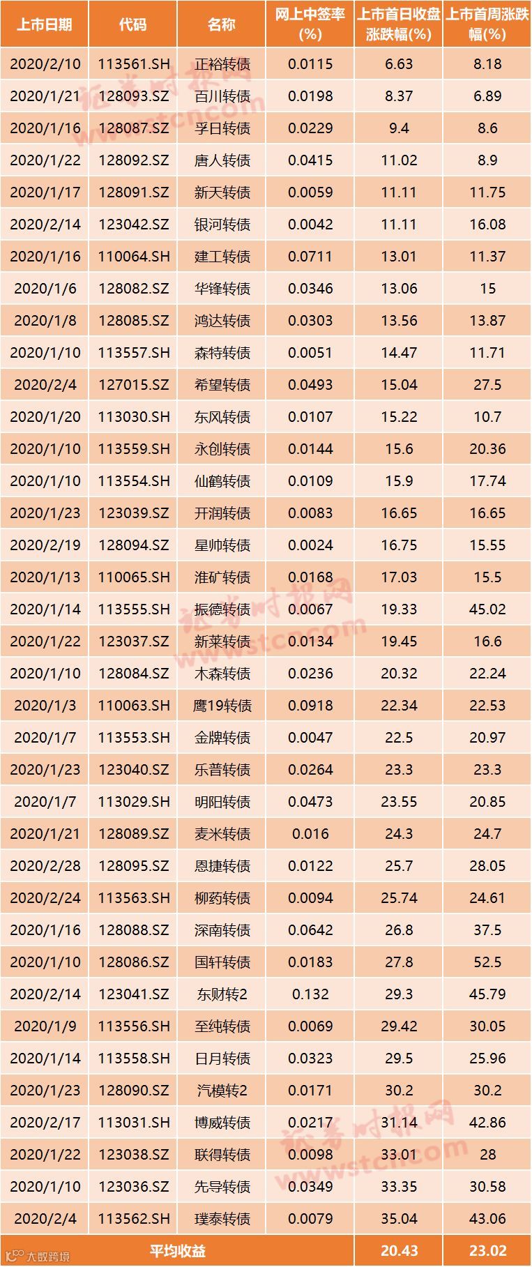 值得注意的是,2020年以来,累计已有37只可转债上市交易,从上市首日表现来看,新债无一破发,上市首日平均涨幅达20.43%。因为收益可观,可转债打新也吸引了越来越多的资金参与。