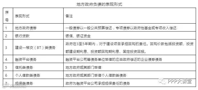 再根据《地方政府性债务风险分类处置指南》,地方政府负债有如下几种表现形式: