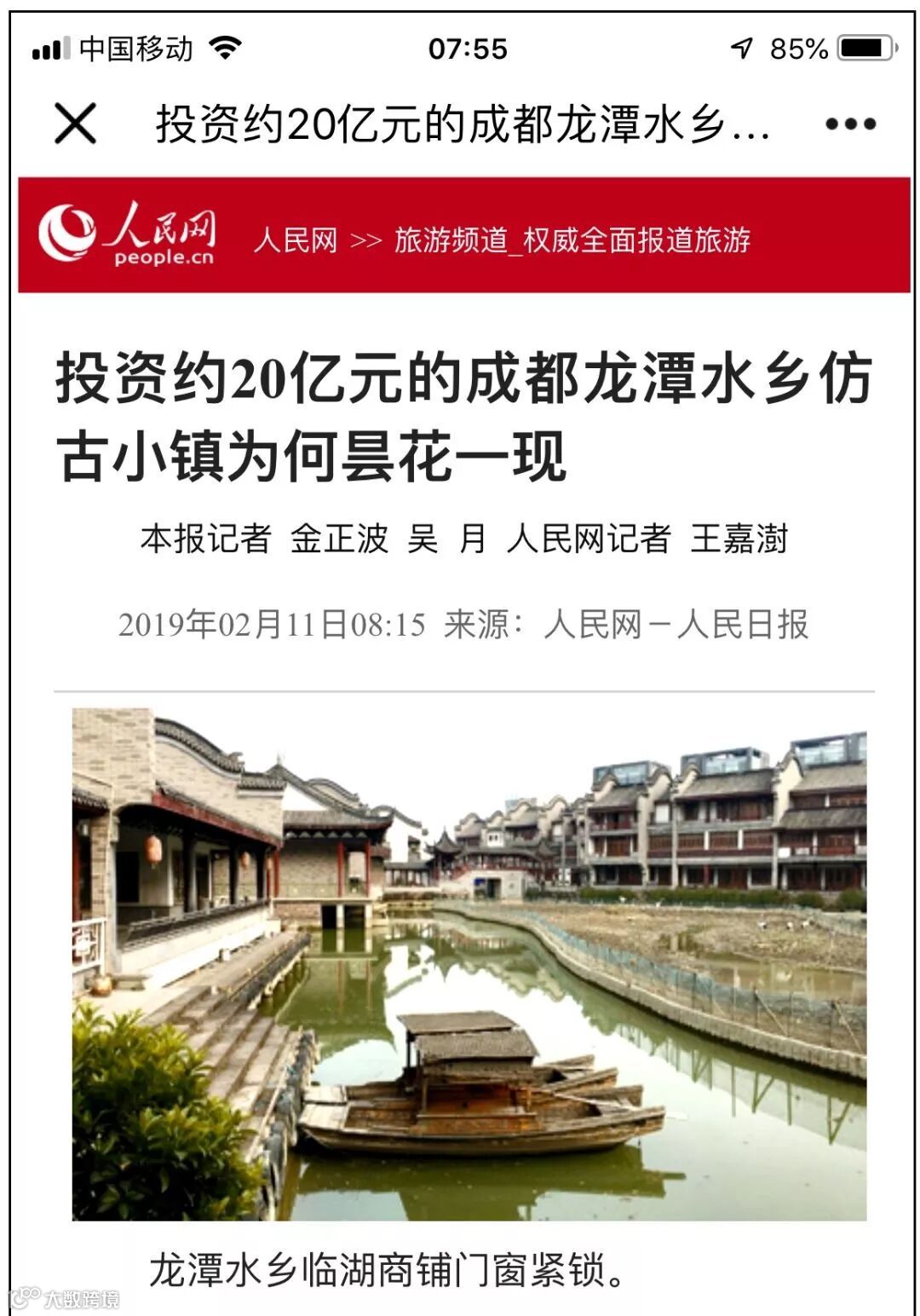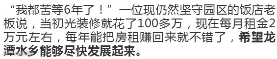 “花巨资打造的仿古小镇,几乎成为一座空城,不仅影响城市形象,更会浪费宝贵的土地资源。不少市民觉得非常可惜,很关心龙潭水乡的未来发展。”