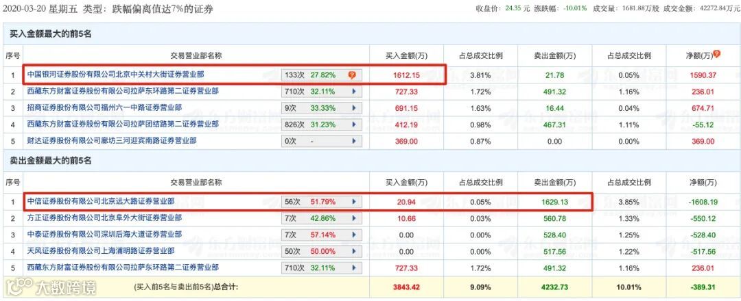 就在深交所点名批评新天转债的3月20日,新天药业跌停,新天转债大跌20.75%!上述的中信证券北京远大路营业部卖出1629.13万元,是当天卖出榜第一大席位。接飞刀的游资是北京“老乡”,来自银河证券的北京中关村大街营业部,20日以第一席位身份买入1612.15万元。