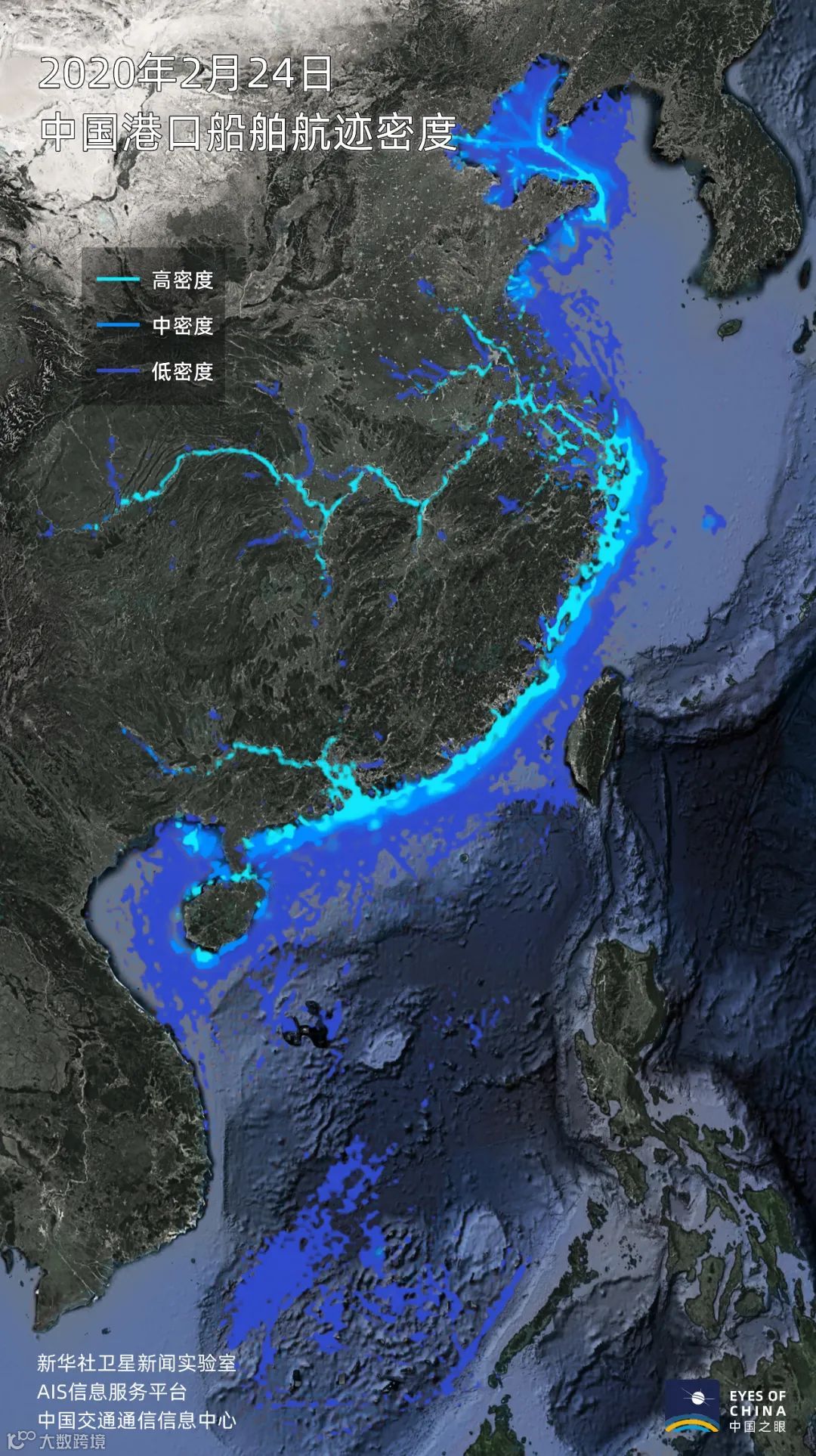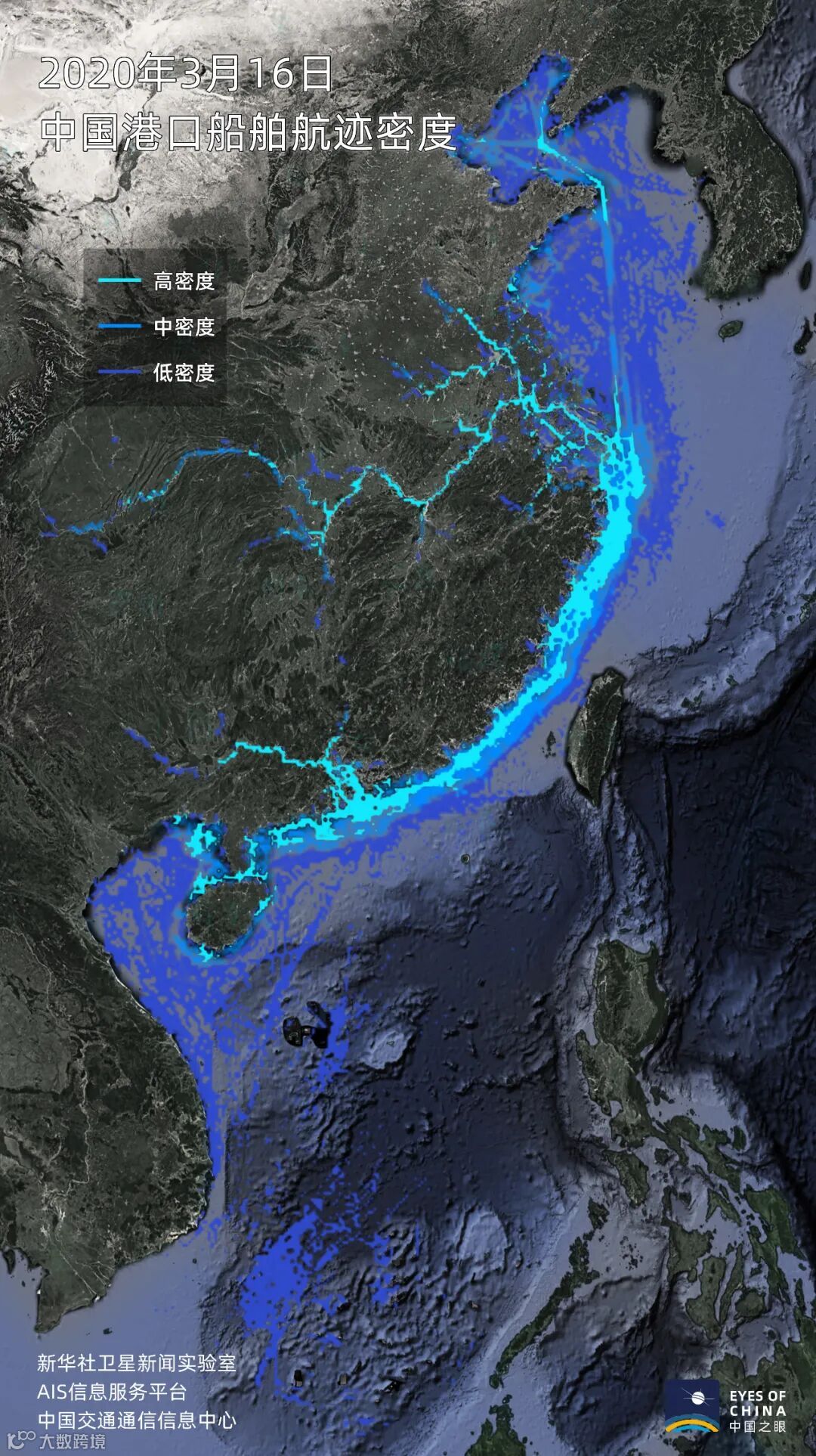 根据通信卫星等方式获得的船舶信息,中国沿海及内河的船舶活跃度正在快速提升。