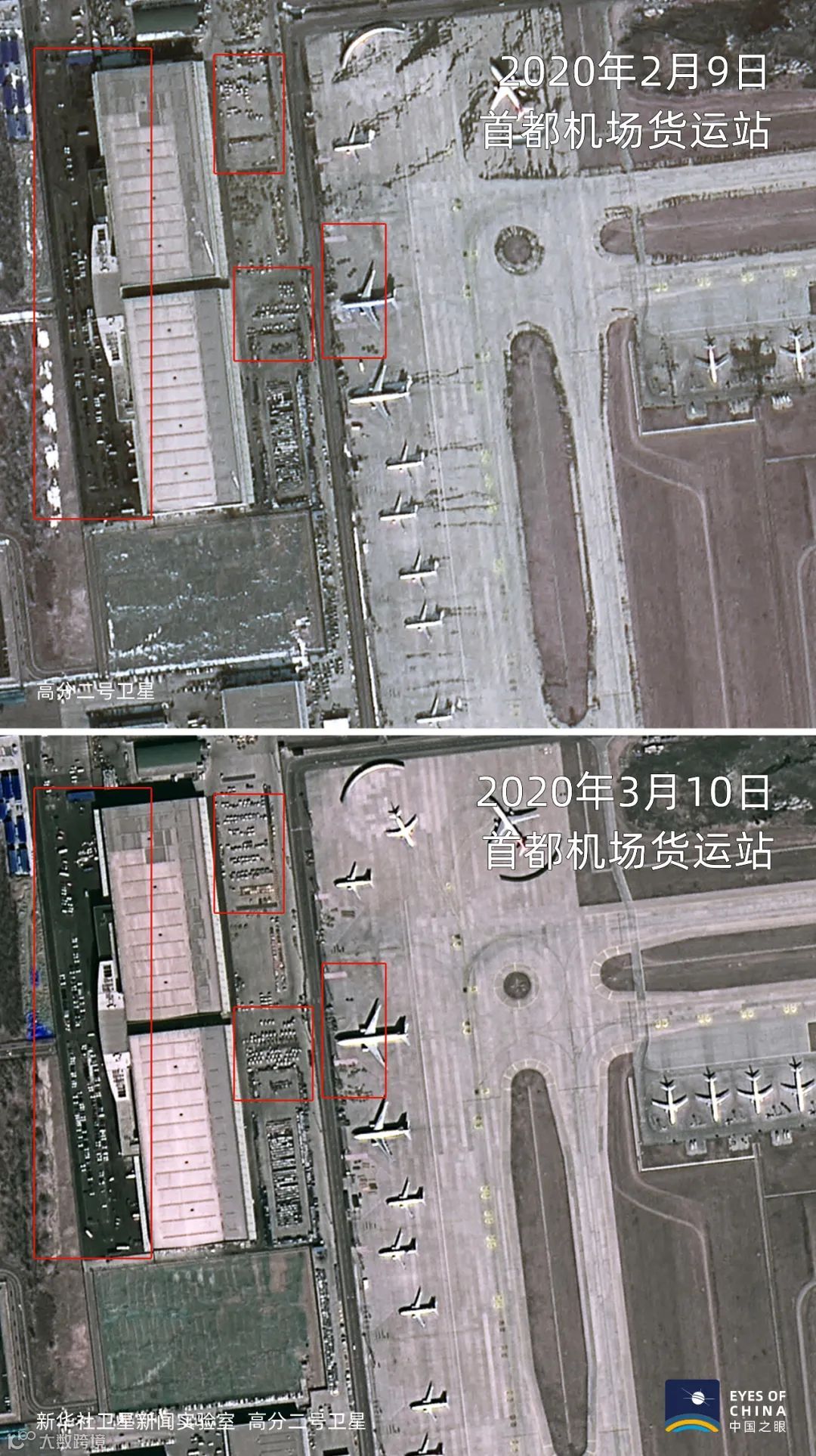 在首都国际机场货运站,地面堆放的货物和停车场车辆明显增多。据航空大数据平台统计,3月10日,首都机场货运航班数量是2月1日的2.3倍,大量物资从这里出发,前往世界各地。