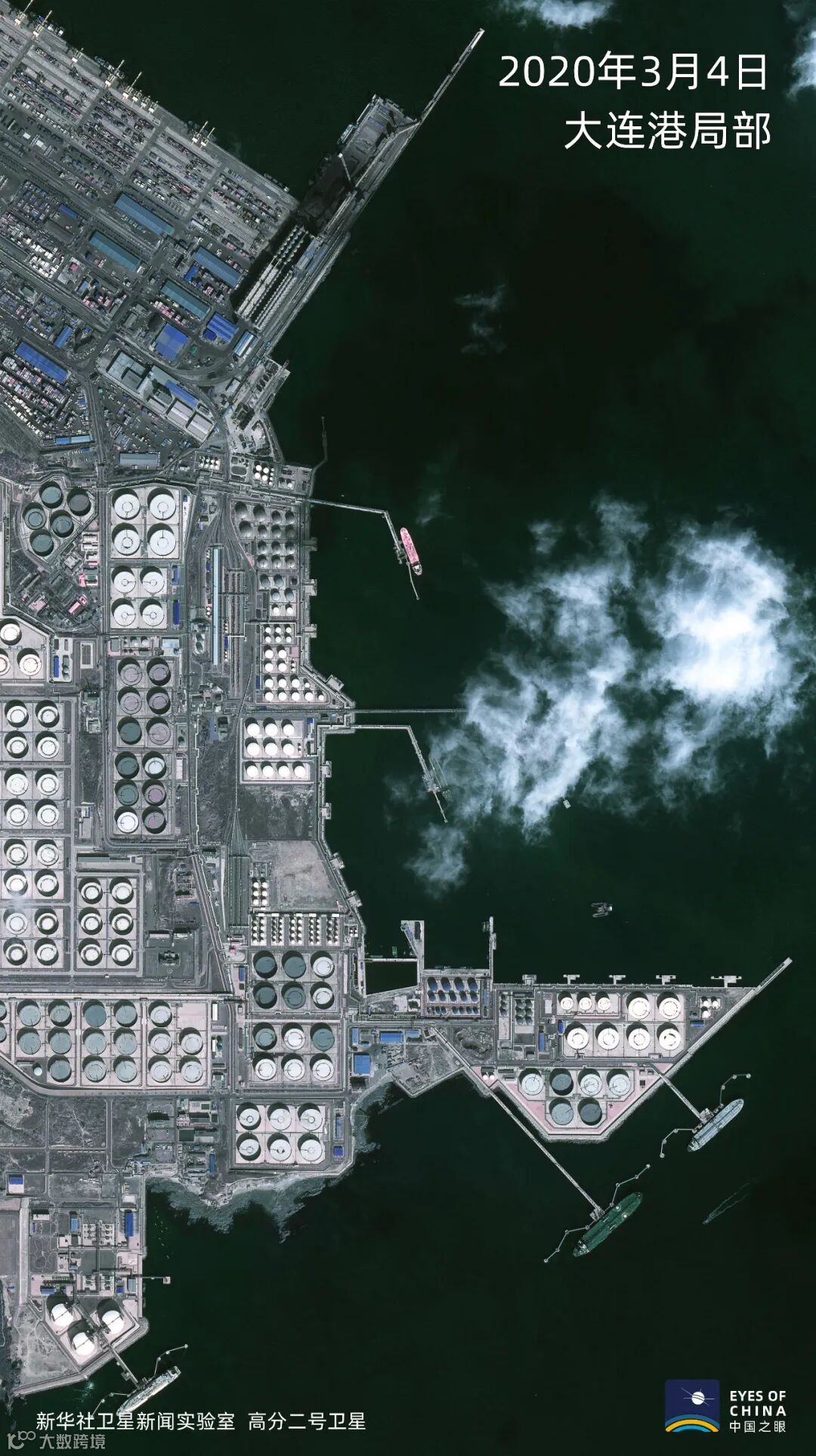 大连港新港油品物流区,可满足世界上最大的ULCC级(44万吨级“泰欧”轮)油轮满载进港靠泊作业的45万吨原油码头,以及10万吨LNG码头和15万吨成品油码头,全部停靠着船只。