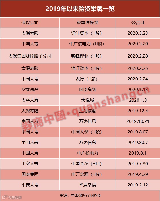 今年险资七次举牌涉及6家公司,其中4次为港股。太保和中国人寿最近的五次举牌均投向了港股。