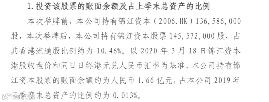 太保寿险今年已两次举牌锦江资本H股,举牌资金来源与上次一样,仍为保险责任准备金——太保寿险-分红-个人分红账户资金。