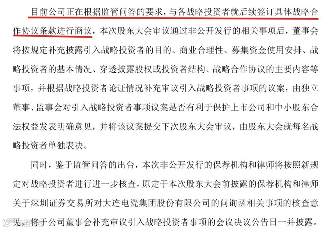 23日大连电瓷公告称,目前公司正在根据监管问答的要求,与各战略投资者就后续签订具体战略合作协议条款进行商议。