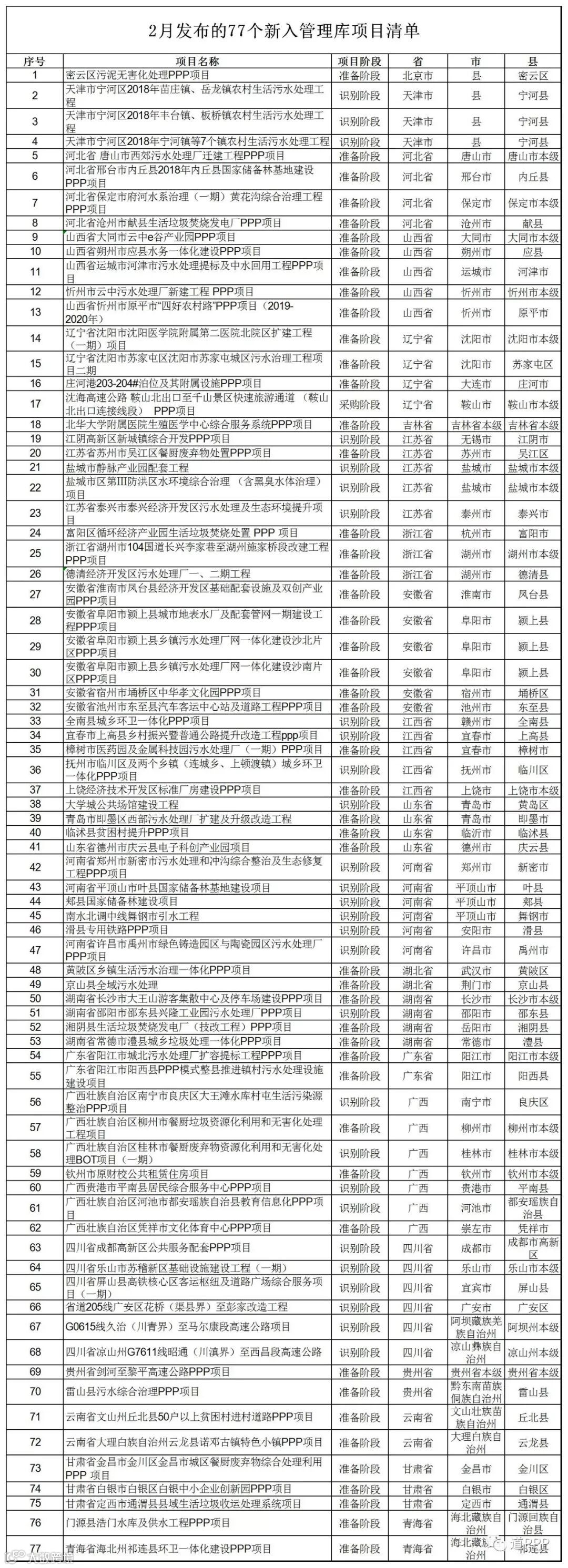 财政部PPP中心发布:按惯例,现发布2019年2月纳入全国PPP综合信息平台项目管理库的项目清单。