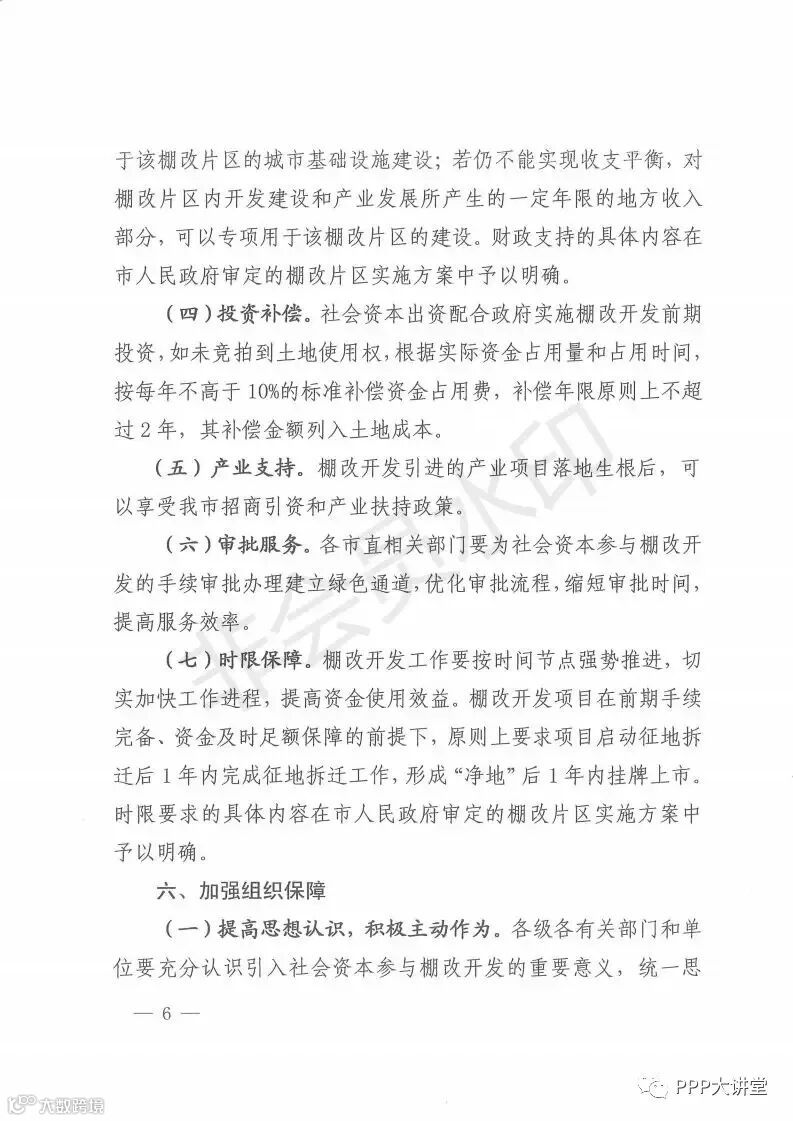 《实施意见》明确,在编制棚户区片区改造开发实施方案时,可以采取调整规划指标、调整片区改造范围、因地制宜确定改造方式等确保项目自求平衡。同时,从三个方面保障社会资本参与棚户区片区改造和开发的收益:一是从土地出让、国省补助、财政支持等方面给予政策支持;二是社会资本方承担片区内的基础设施建设可获得利润;三是土地二级市场开发的收益。
