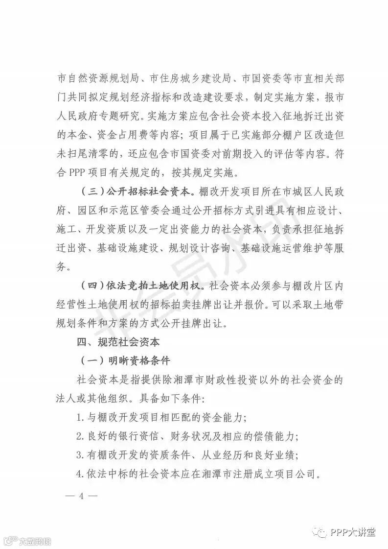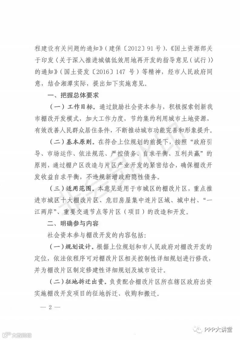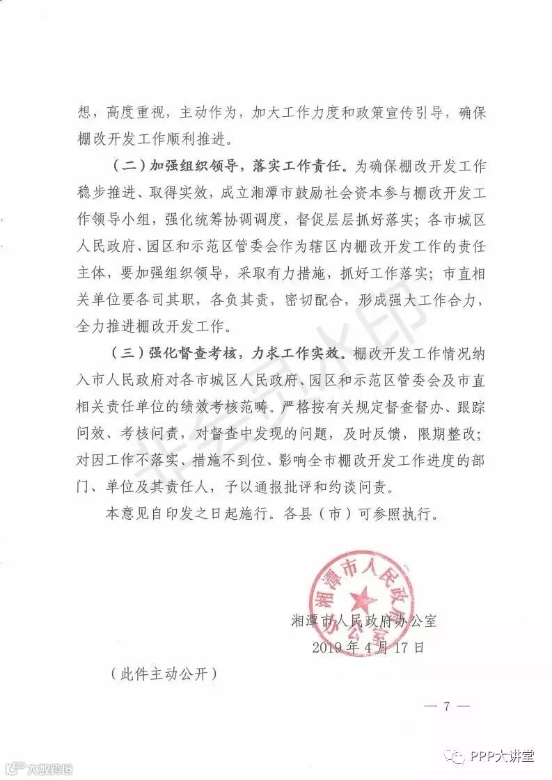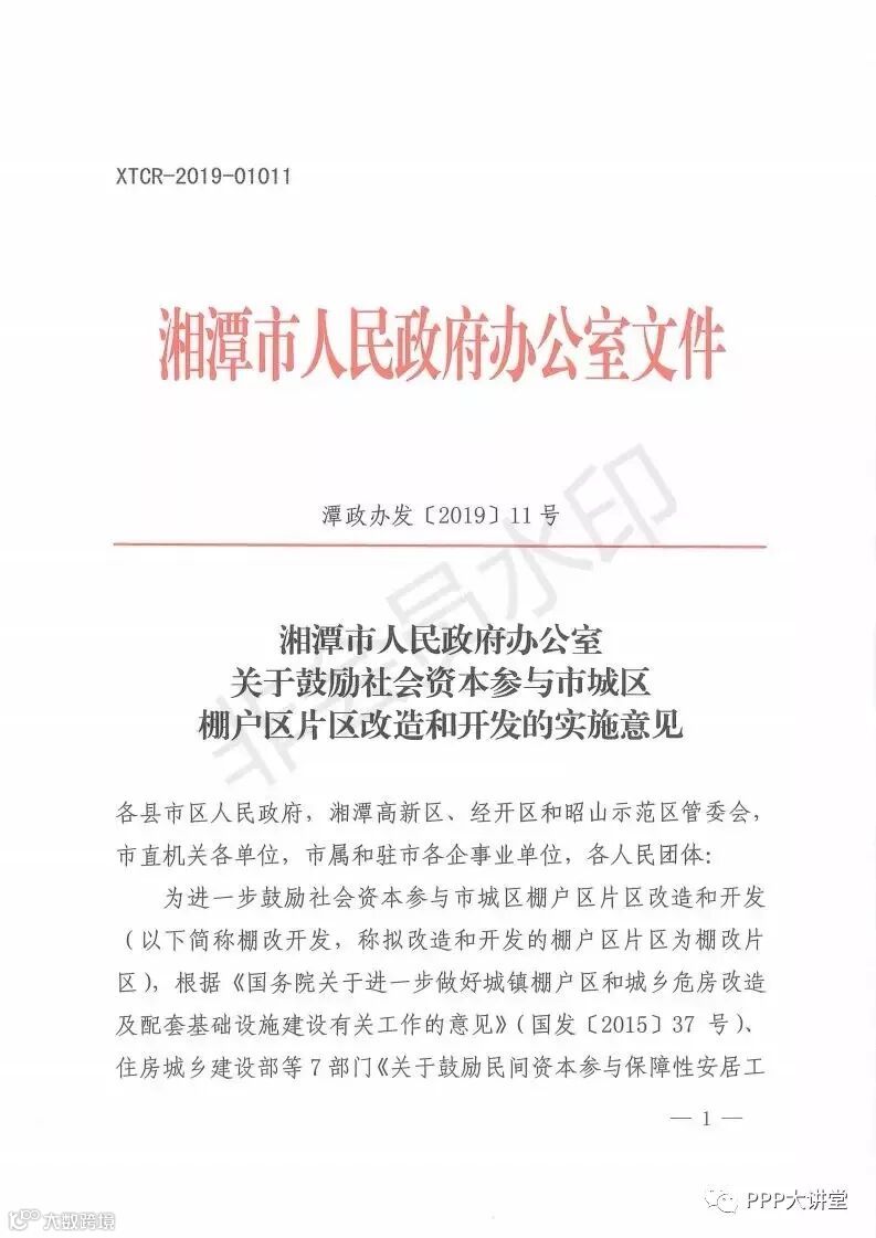 为进一步加大我市棚户区改造力度,充分发挥棚改拉动经济增长和保障改善民生的作用,创新棚改融资机制,进一步鼓励社会资本参与市城区棚户区片区改造和开发,根据国省相关政策精神,4月17日,湘潭市人民政府签发了潭政办发【2019】11号《关于鼓励社会资本参与市城区棚户区片区改造和开发的实施意见》(以下简称《实施意见》),现将全文公布如下: