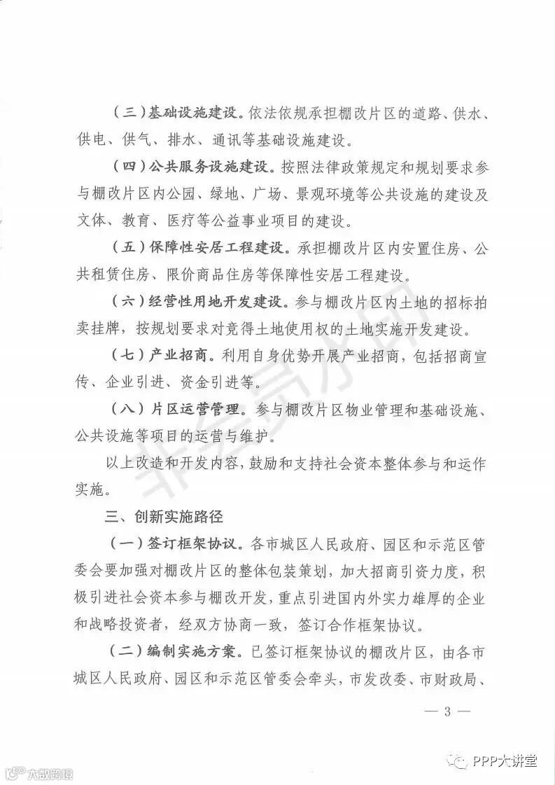 重点推进市城区十大棚改片区、危旧房屋集中连片区域、城中村、“一江两岸”、重要交通节点等片区(项目)的改造和开发。对片区初步定位,进行全面现状摸底,开展片区收支平衡经济测算等可行性论证分析和社会资本合作框架条件研究,科学划定片区范围,引进实力雄厚资信优良的社会资本参与改造开发。