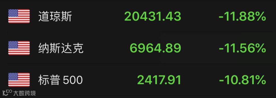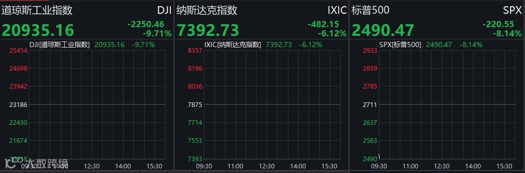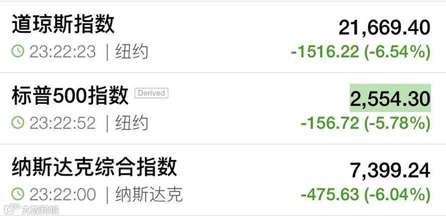 不过,随后美股跌幅也大幅缩窄,美国三大股指持续拉升,跌幅均缩窄至7%以内,道指跌幅约1500点。