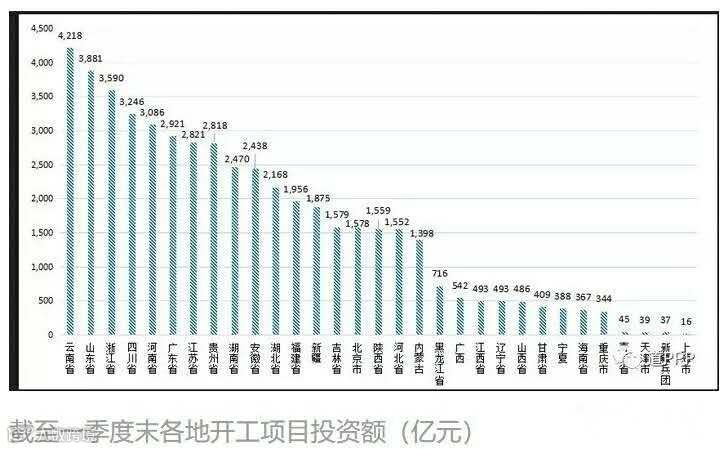 一季度已开工项目数前三位的是山东(含青岛)、安徽、广东,开工项目投资额前三位的是云南、山东(含青岛)、浙江。