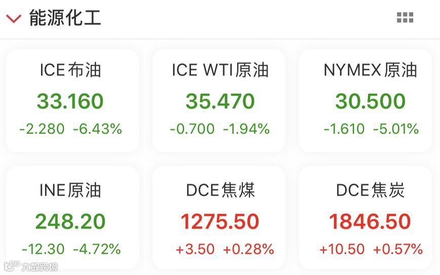 同时,国际油价跌幅扩大,布油跌逾6%,NYMEX原油大跌逾5%。
